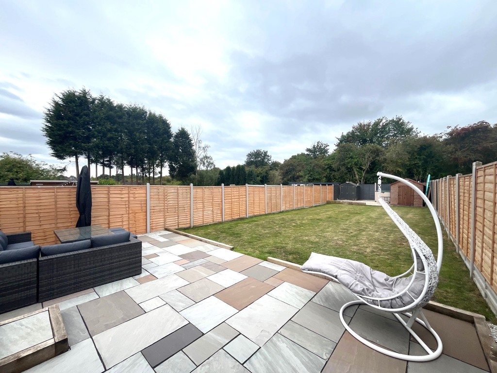 OUTSIDE To the front is a paved drive, providing off road parking for two vehicles, wrought iron gate leading to side access with decorative paving leading to the rear patio. The patio area is on two levels with a generous seating area overlooking the garden, which is mainly laid to lawn with surrounding fence panels.